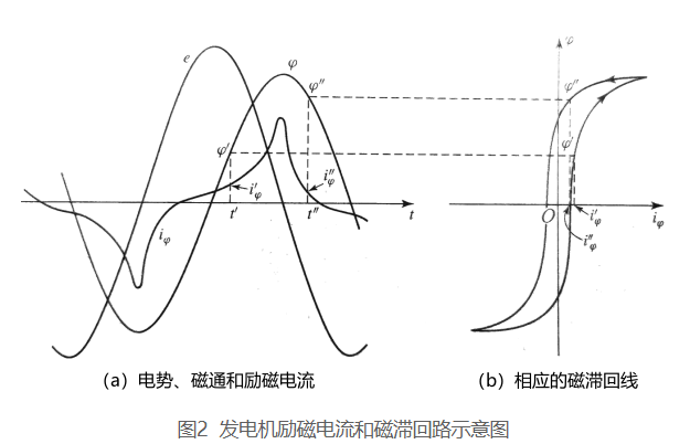 ③ 發電機負載的功率因數較低。如果發電機負載的功率因數較低,并要求發電機輸出額定功率和額定電壓,就必然會使勵磁電流超過額定值,使勵磁繞組發熱。