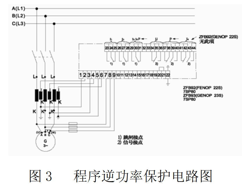 (2)失磁保護:逆功率可能伴隨失磁,需協調動作邏輯。